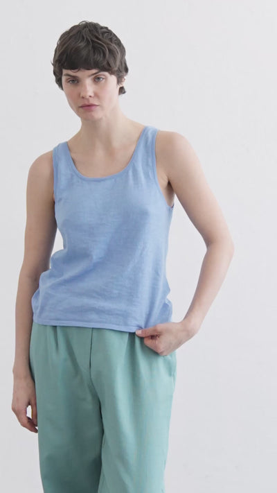 Our knit vest is crafted from slub-knitted cotton, offering a lightweight feel and natural texture. This tank top features a scoop neckline and sleeveless silhouette, designed for an easy fit and everyday comfort.